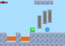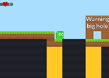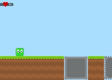 In this game try to get as many points as you can! This happends when you touch the green area! Avoid the spikes!