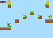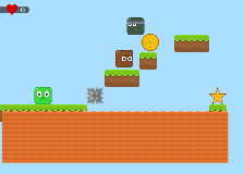 Join Cubito, a green cube, on an adventure full of jumps, traps, and stars! Reach the goal without losing lives!